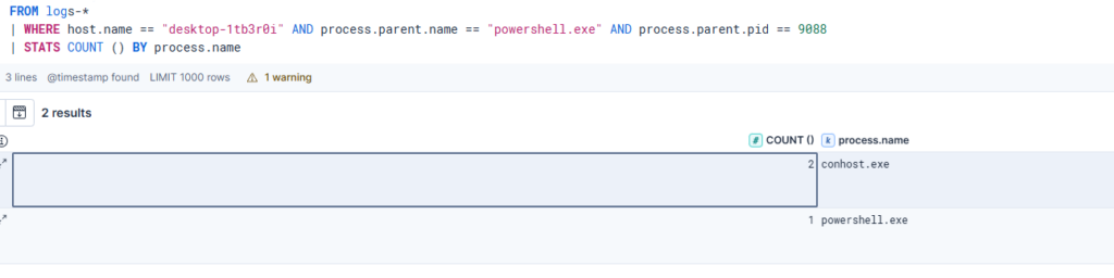 | WHERE host.name == "desktop-1tb3r0i" AND process.parent.name == "powershell.exe" AND process.parent.pid == 9088