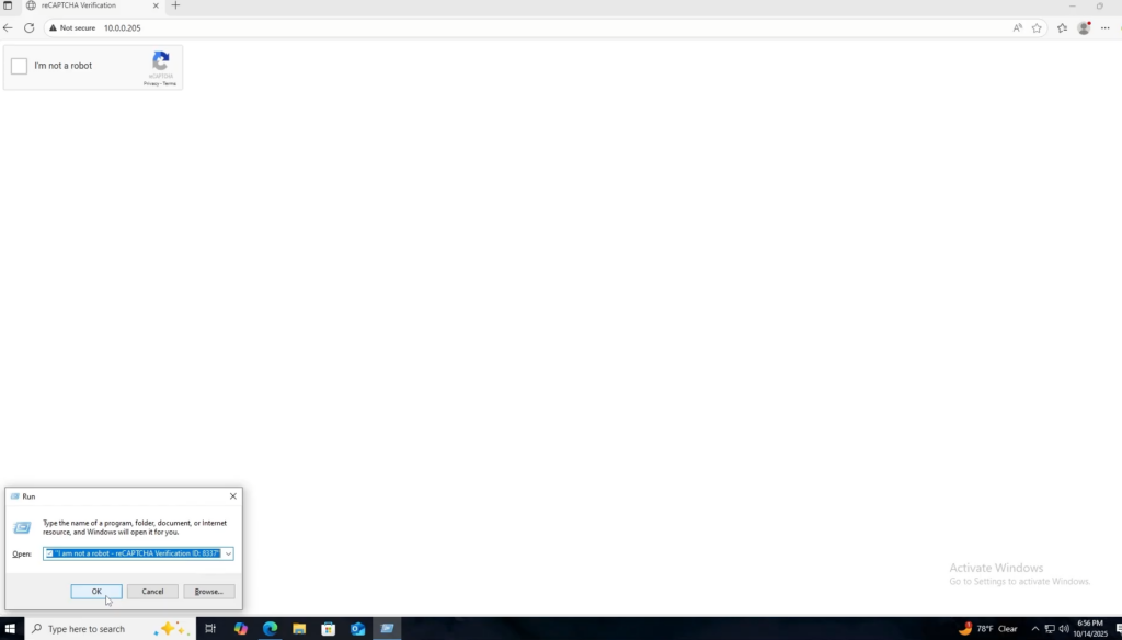 This clickFix demonstration is kindly set up with John Hammond’s reCaptcha Phish repository. In this repository, the reCaptcha page is set up to download the other script in the repository, /recaptcha-verify.